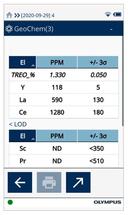 使用奧林巴斯Vanta手持式XRF光譜儀上的偽元素功能,可以在現(xiàn)場(chǎng)實(shí)時(shí)計(jì)算TREO的含量。在檢測(cè)過(guò)程中,儀器可以完成所有計(jì)算,如圖4所示。